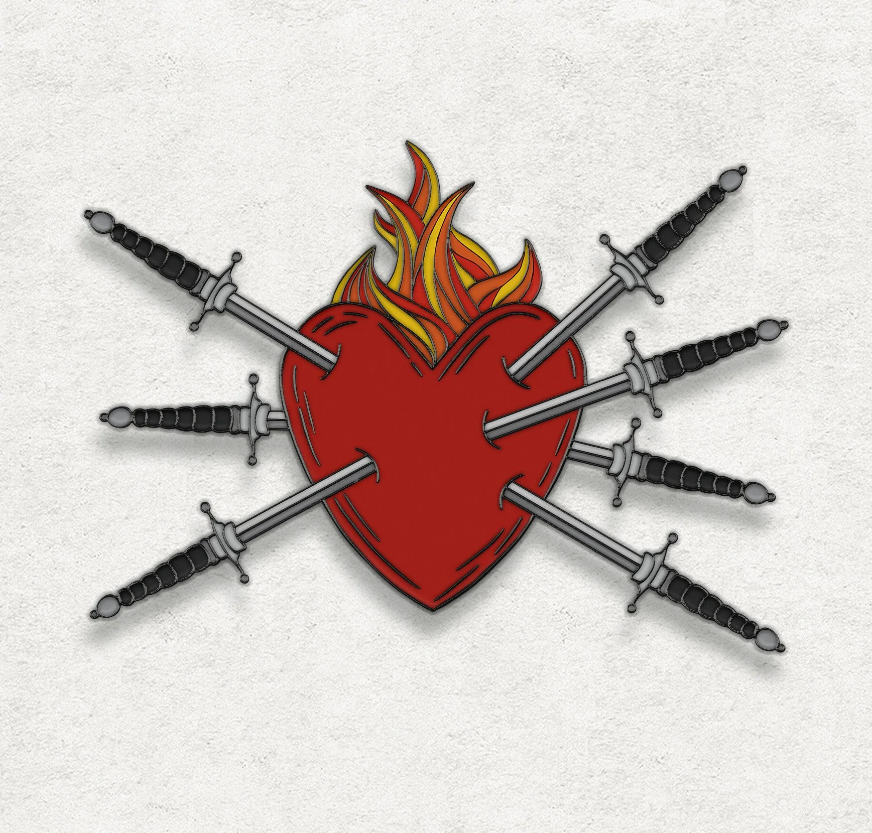 Stickers & pins sold at several Middle Each Film & Comic Cons.